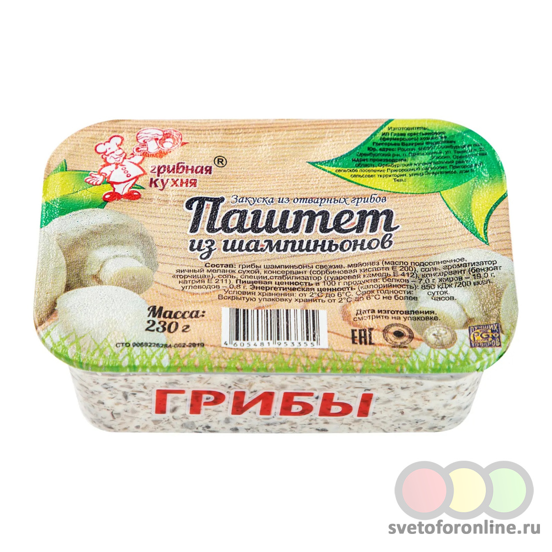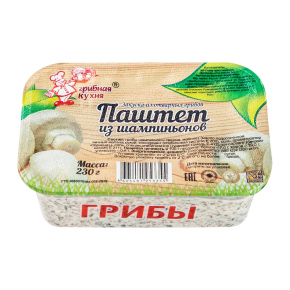 Паштет из шампиньонов ТМ "Грибная кухня" 230г ИП КФХ Григорьев В.Ф. - Купить в магазине "Светофор" город Москва, Ярославский р-н, Ярославское шоссе, д 146 к 1